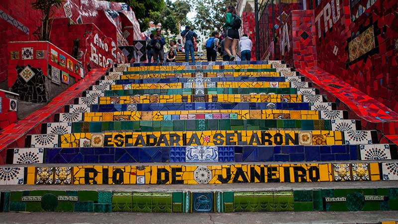 The Selaron Steps are a set of steps covered in mosaics and painted tiles. They set a colorful background that’s not only mesmerizing but also the perfect backdrop for a group photo. What began as small renovation by Chilean artist Jorge Selaron to beautify the dilapidated steps in front of his house soon became an obsession. The mosaics and tiles spread to all the steps, as well as the walls. Brightly colored ceramic tiles and mirrors pay tribute to the colors of the Brazilian flag and renowned artists.