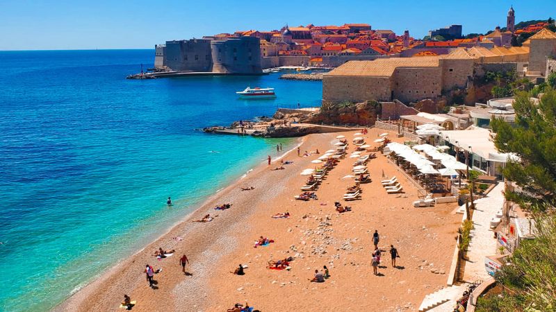 Outside of the city walls, take a break from the Middle Ages and unwind at some of Croatia’s exquisite beaches. Less than five minutes from the city gates is Plaža Banje, a small, white pebble beach that is as jaw-dropping as it is peaceful. The main access point is a series of stairs leading down to the beach.