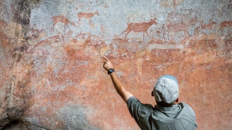 We were shown around by Vusa, a friendly staff member of Big Cave’s neighbouring resort lodge hidden among the rocks. He led the way, telling stories of the area’s history, of the bushman people who lived here thousands of years ago, and of the surrounding plant life that provides food and healing remedies, and poisons that can kill quickly.