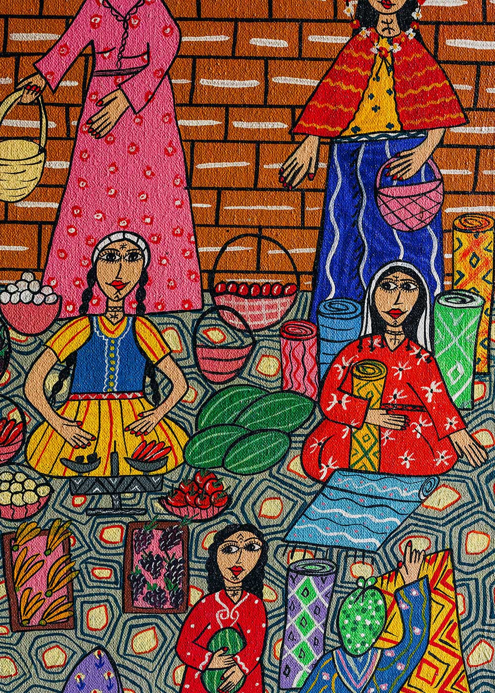 As for the naive style that I use in my paintings, I hope that it will inspire more women to paint in this style. The first woman who started this style in Morocco has since passed away, but I believe that there will be more girls and women who will take up this art form in the future because it is a great job and a good way to express yourself.