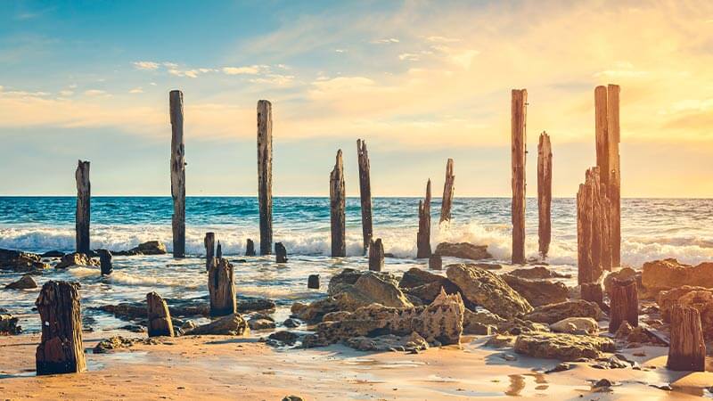 Port Willunga is one of South Australia’s most photographed beaches, and for good reason. It has squeaky white sand sheltered by towering cliffs and (very Instagrammable) remains of an 1850s jetty known as ‘the sticks’. It feels a million miles from Adelaide despite being just an hour’s drive away. The beach is also the site of one of South Australia’s worst shipwrecks — the Star of Greece which sunk during a storm in 1888 — and you can snorkel it at low tide.