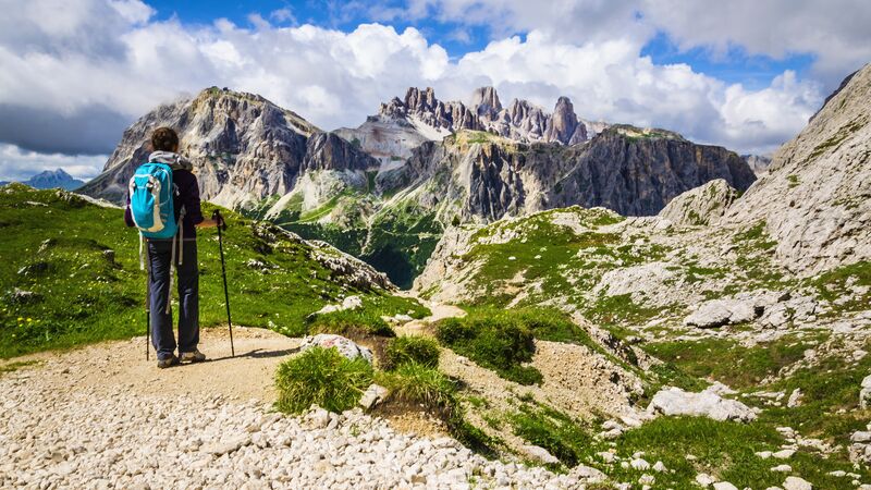 Hiking in the Dolomites is a Great Walk that’s popular with travellers from around the world. This eight-day round-trip guided group tour departs from Venice, one of Europe’s most iconic cities and the perfect spot for an extended pre- or post-tour stay to make your holiday last longer. After a couple of hours’ drive, you’ll arrive in the Italian town of Dobbiaco which is the perfect jumping off point for some of the Dolomites best walks which take in the sheer rock walls, deep valleys and lush pastures of the northern Italian Alps.