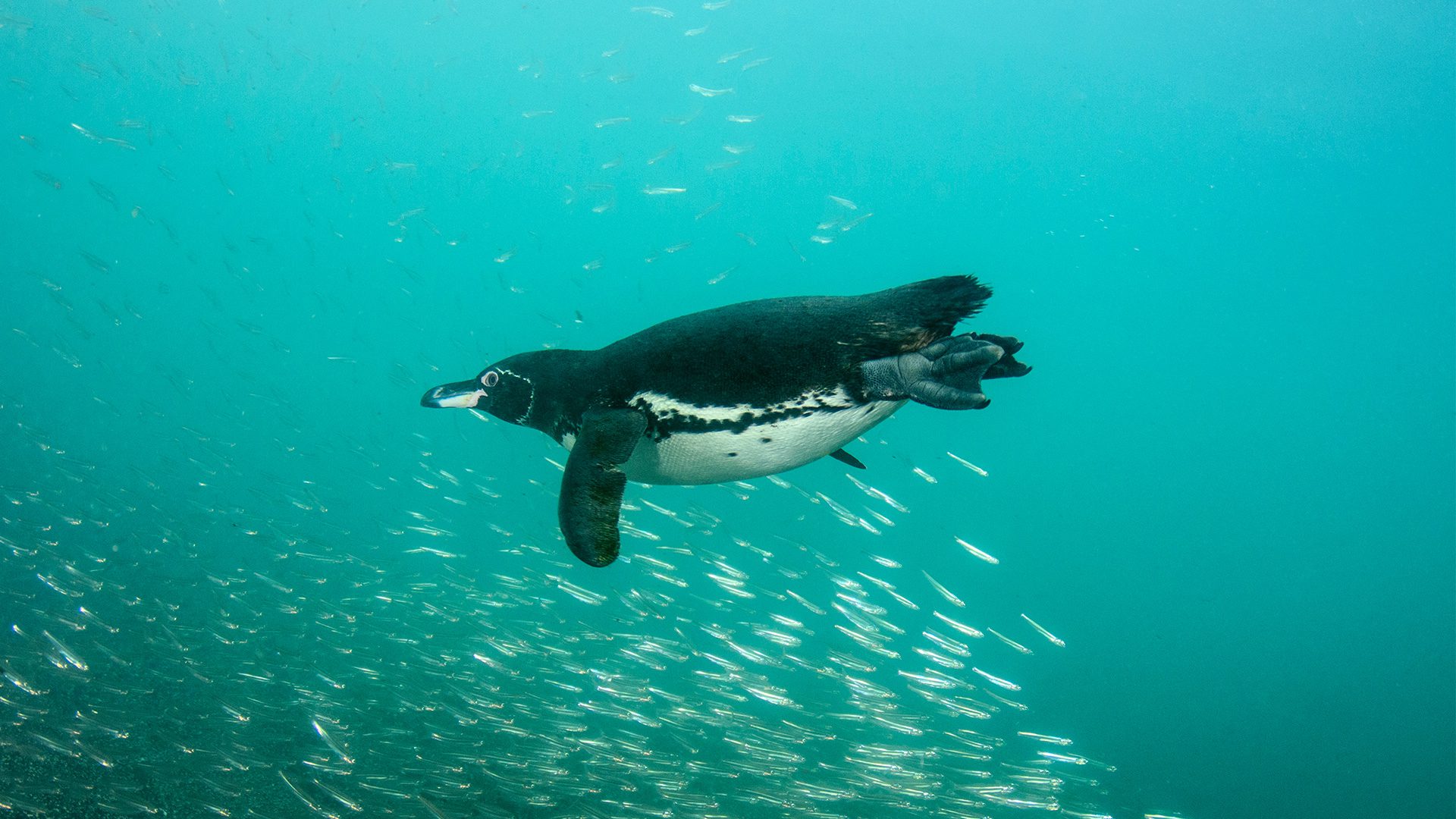 Then, I turn a corner, following along the jagged and rocky edge of the island, creating a phenomenal maze below the surface. That’s when I see them. Penguins who live on the equator.