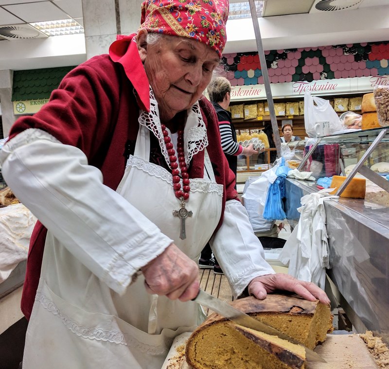To taste a Zagreb specialty, arrive at the market early. There are only a few women who continue to bake a traditional style of yeast-raised cornbread, and the loaves sell out before midday. It boasts a crusty exterior and a dense yet soft interior packed with the flavour of fresh corn. One of the kumica (market women) is a feisty septuagenarian who has been selling the labour-intensive bread at Dolac since she was 19.