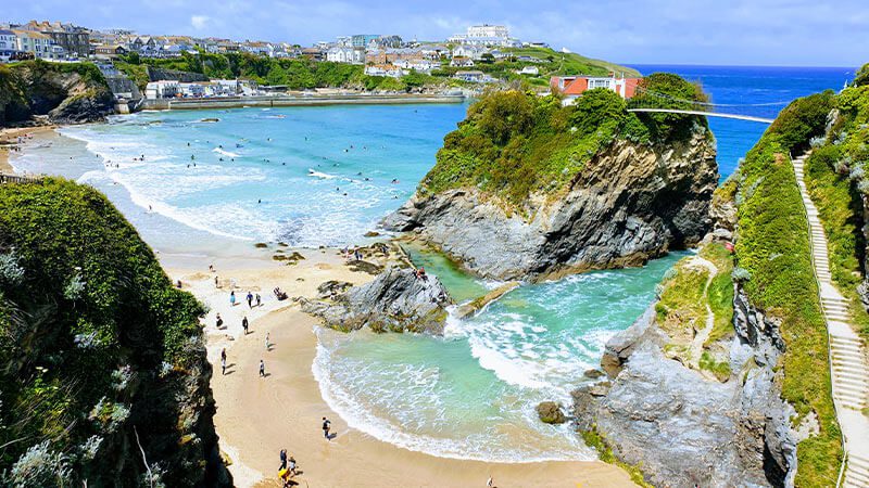 When it comes to quaint British beach towns, Cornwall is full of them. Many Cornish towns are built on the coast and ooze seaside charm. You’ve got the iconic St. Ives with its cobblestone streets, quirky galleries, cafes and postcard-perfect beaches. Then there’s the beautiful fishing village of Mousehole with its idyllic harbour, stone cottages and winding streets dotted with artist workshops, boutique shops and eateries. There’s also the delightful Gorren Haven, the old-world charm of Charleston and the lovely village of Sennen – the list goes on.