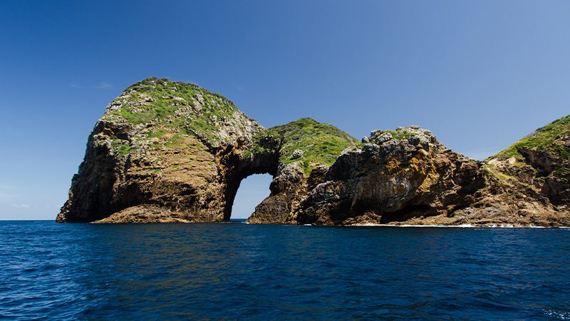 Off the shores of the Tutukaka coast you’ll find the Poor Knights Islands, a rugged series of islets with a history stretching back 11 million years. On a full-day Bay of Islands scenic cruise, you’ll have the chance to snorkel, swim, kayak, explore ancient caves and learn about the geological and natural history of the islands. The waters surrounding the island are home to more than 125 species of fish which you can spot hanging out in the soft corals along the reef. It’s not uncommon to spot marine life from the boat as well, including dolphins and whales. If you’d prefer to put your feet up, the boat is kitted out with plenty of seating and viewing areas.