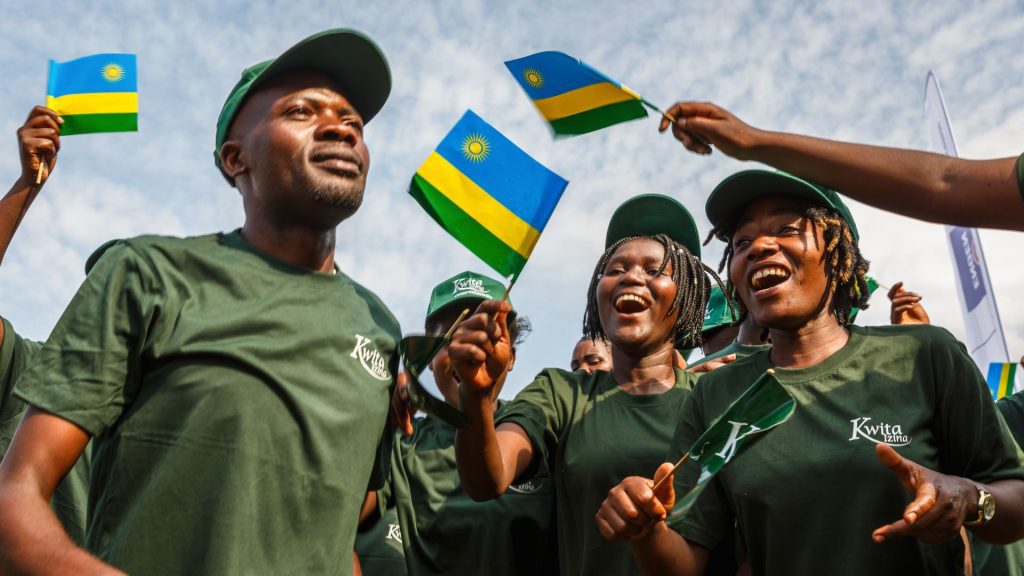 As I got closer to the Kwita Izina grounds, I heard the crowd before I saw it. Thousands of young people from neighbouring villages sang, danced and waved Rwandan flags. It was like a championship home game, a show of passion and pride. Fifty thousand people turned out for the televised event, which included a string of musical performances and traditional tribal dances.