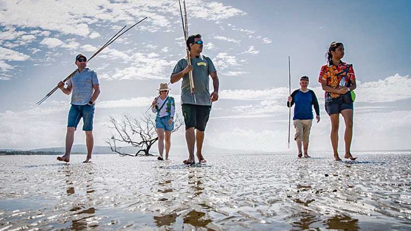 Go where the Rainforest meets the Reef and explore Kuku Yalanji Country, the only place where two world heritage sites meet, the Daintree Rainforest and the Great Barrier Reef. These contrasting environments offer spectacular scenery, unique ecosystems, food sources and Dreamtime Stories. Join Juan Walker on the Ngana Julaymba Dungay, We all going Daintree, for a half or full day tour. On the beach learn the art of spearing a mud crab and collecting shellfish, in the rainforest discover the huge variety of bush foods and medicines seasonally available and learn about Kuku Yalanji connection to Country, culture and history.