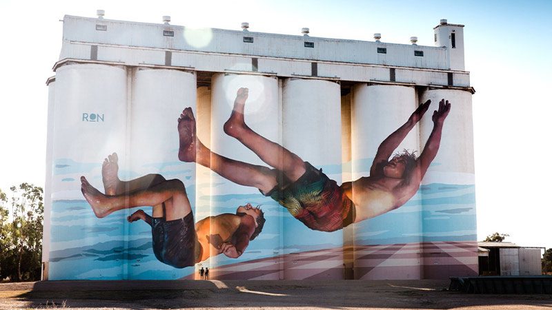 These impressive silos were created by Argentinian street artist, Martin Ron and South Australian painter, Matt Gorrick. The duo were inspired by watching locals jump off the Tumby Bay Jetty. It’s well worth stopping by if you travel south towards Port Lincoln.
