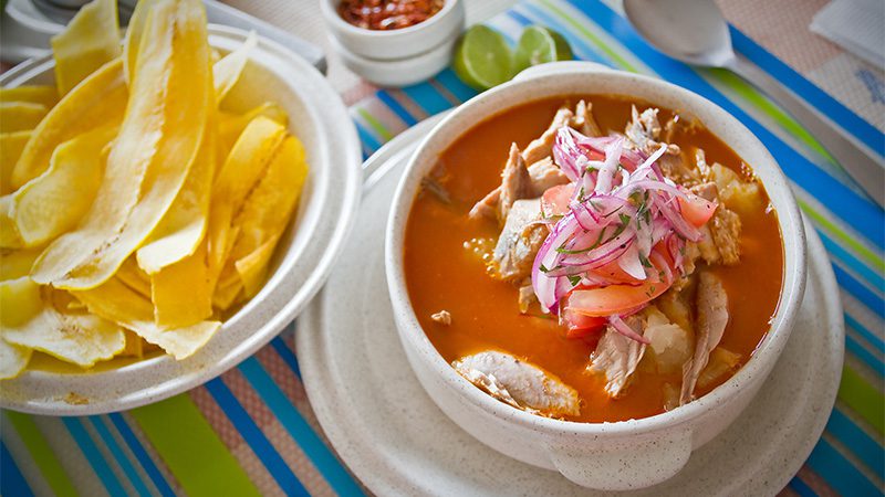 Being an archipelago in the middle of the Pacific Ocean, it’s no surprise many of the traditional dishes of the Galapagos Islands feature ingredients that come from the sea – think lobster, langostino, and sea cucumber. While you’ll see seafood on every restaurant menu (shrimp ceviche is a firm favourite), you won’t have to dine exclusively on dishes such as encebollado, a thick fish soup made with yucca, chilies, and onion, or arroz marinero (seafood rice).