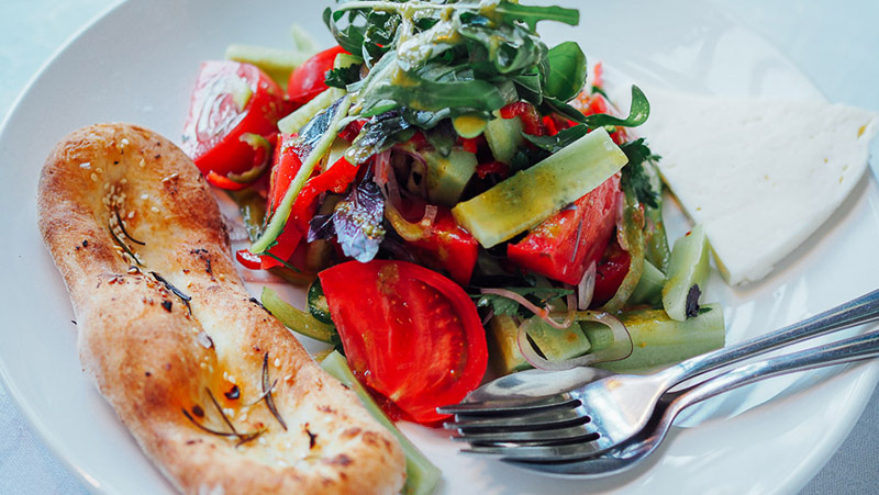 Traveller’s Tip: Make a meal of it – the Georgian salad at Tbilisi’s worst kept secret cafe, Keto and Kote, is served with freshly baked bread and a wedge of salty sulguni cheese.