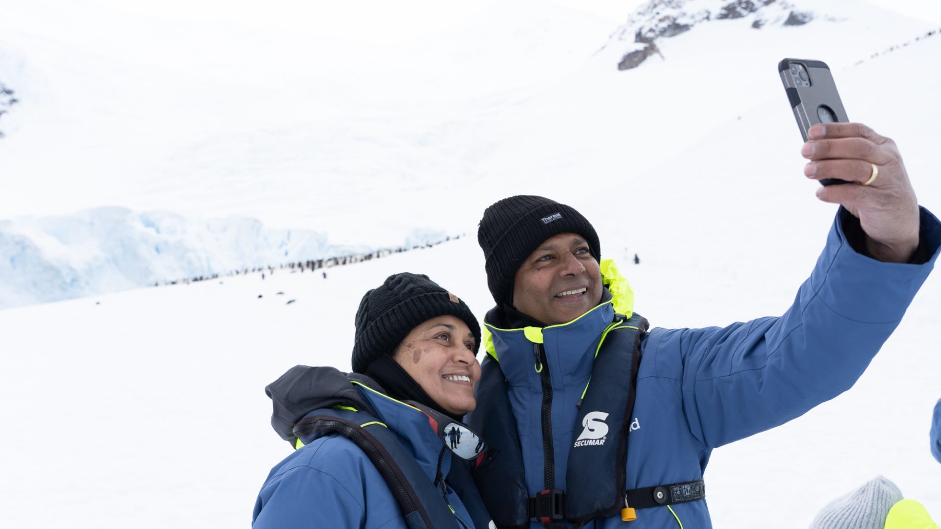 Kamla and Leslie take a selfie on the icy continent