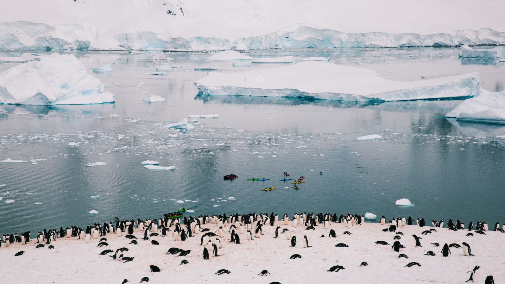 Intrepid kayakers observe a penguin colony from the water