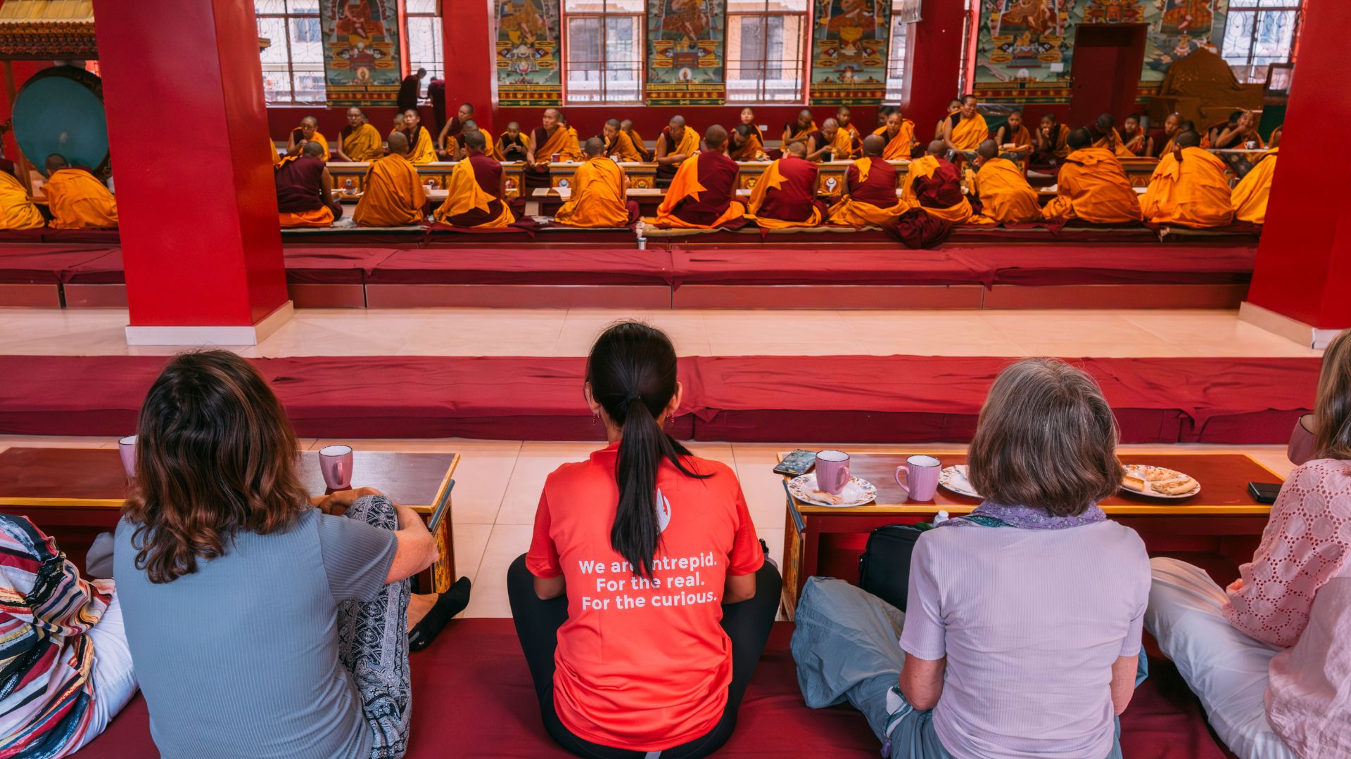 The subtle aromas of spice and cinnamon fill the air as we clutch our hands around our warm mugs and listen to the hum of the women and girls who’ve devoted their lives to Buddha.