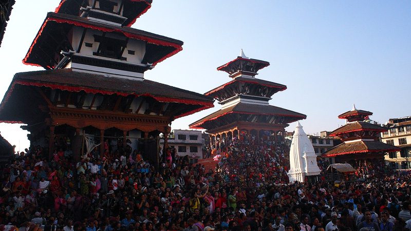 Indra Jatra (also known as Yenya) is Kathmandu’s biggest street festival. It’s put on each year to celebrate the Indra and Kumari, two Hindu deities. For eight days the capital comes alive with masked demons and gods dancing in the street, marching bands and chariot processions. Try to get there for the first day, when dozens of men raise the enormous Yosin pole in Burbar Square: a tree trunk dragged 29km from the tiny town of Nala.