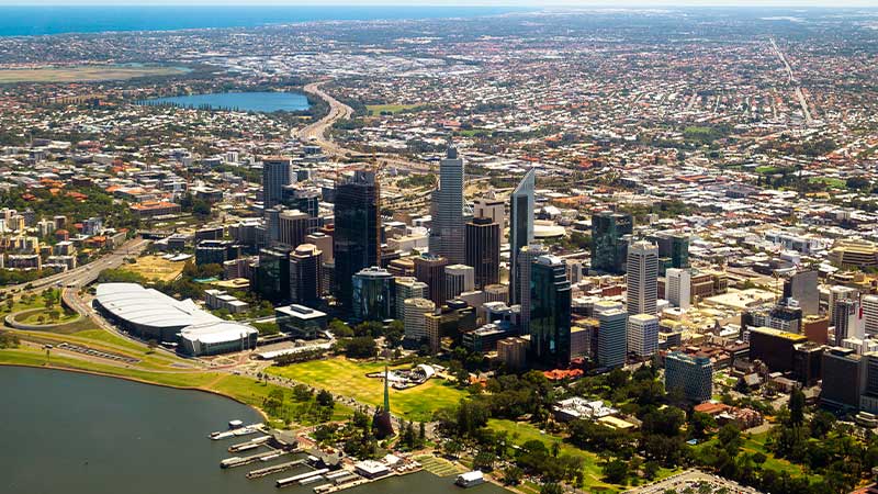 Aerial view of Perth's city.