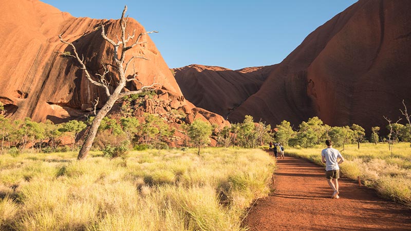 Travellers walking through Uluru Kata Tjuta National Park