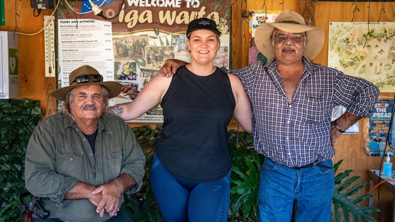 Driving into Iga Warta, I felt a really weird energy shift. It was almost a sense of familiarity. Once we got into our destination, we were welcomed by song and a smoking ceremony with two uncles, Terry and Clarence. I said thank you to Uncle Clarry and he touched me on the shoulder with his clap sticks (traditional percussive instruments). When we had a spare moment, I introduced myself through my family, making note of my Dad, Grant Sarra, my Grandma, Norma Broome, my Pop, Michael Williams, and Pop’s brother, Willy McKenzie. As soon as I said this, Uncle Clarry said, ‘I knew you were family when I touched you with my clap sticks’.