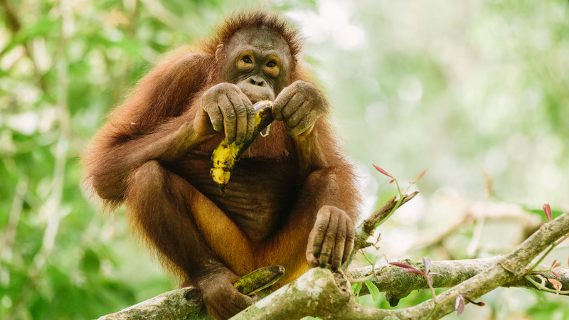 Because of this, the orangutans are under threat of becoming extinct. It’s estimated that there are currently only 50,000 – 55,000 living in the wild, and they’ve recently been listed by the International Union for Conservation of Nature (IUCN) as critically endangered. A rainforest without these shaggy apes puts the forest ecosystem in danger; not only does it impact a myriad other animals and plants, the loss of orangutans is also representative of the loss of Borneo’s precious rainforest ecosystem, that sustains the lives – and livelihoods – of the Indigenous people of Indonesia and Malaysia.