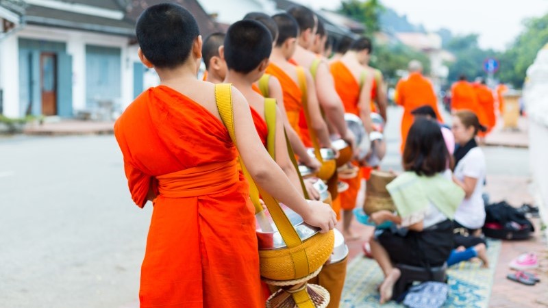 Every morning at sunrise locals line the streets to put offerings of sticky rice into bowls carried by saffron-robed monks. By giving food it’s believed that you “make merit”, which is carried over into the next life. Travellers are welcome to observe this ritual but should keep a respectful distance. Be sure to dress conservatively and turn off your flash to avoid disrupting the monks’ meditation.