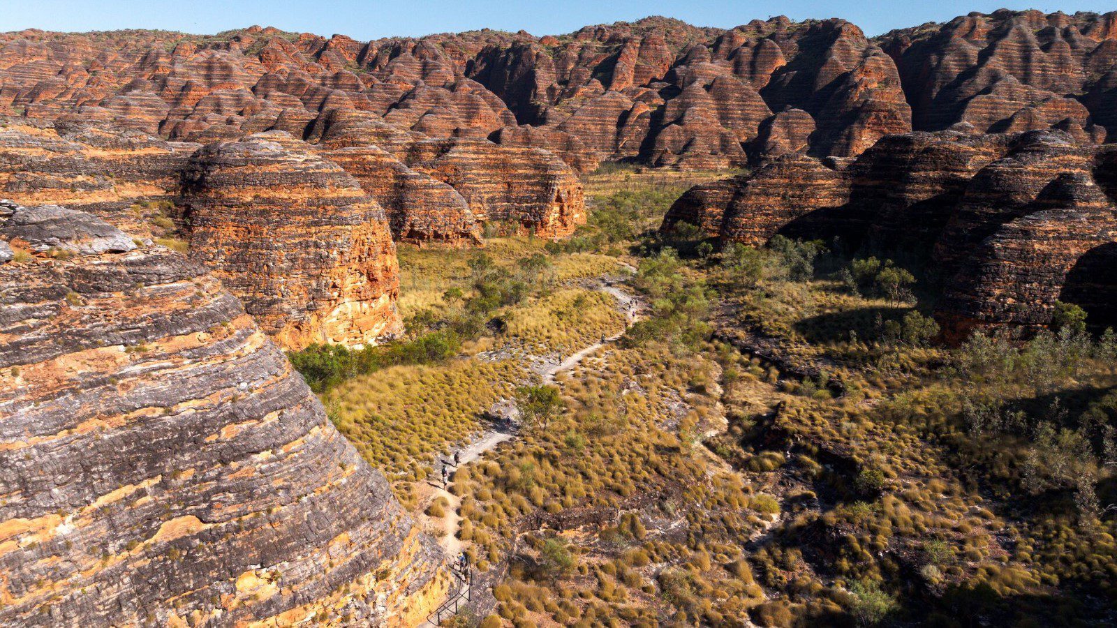 Purnululu National Park is home to the celebrated Bungle Bungles, a vast range of unique cone-karst rock formations. Australia’s First Peoples had long known of the Bungle Bungles, but settlers didn’t discover them until the 1980s. Amazing, really, considering they span 450 square kilometres.