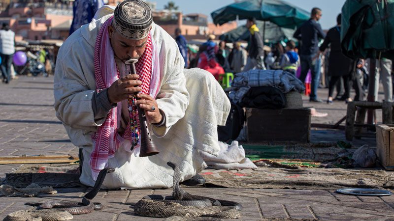 After almost a week in Morocco, I still hadn’t seen a snake in a basket. Along with mint tea, souks and tagines, snake charming was, to me, quintessentially Moroccan, and I was desperate to see a ‘performance’.
