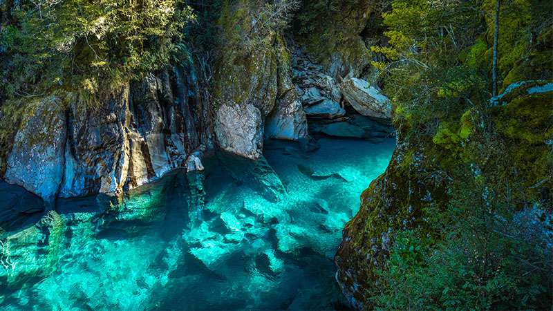 Widely regarded as one of New Zealand’s best short walks, you’ll find the Blue Pools Track along Haast Pass, between Wanaka and the West Coast. The ranger-led walk begins with an easy stroll along open flats with spectacular mountain views before you pass through a beech forest and arrive at a swing bridge over the Makarora River. Keep going to the second swing bridge as this offers the best view of the Blue Pools. You won’t need to turn up the colour saturation on Instagram when you post photos from this short but sweet walk. Mother Nature has already dialled up the blue for maximum effect.