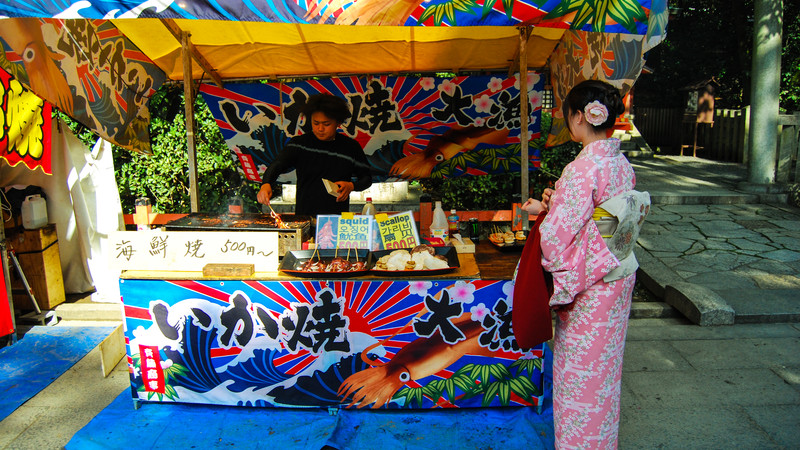 Next, instead of solely visiting Kinkaku-ji temple or Kiyomizu-dera temple (two of the most popular sites in the country), pedal over to Heian-Jingu for a relatively tourist-free time. Fronted by a dramatic torii gate, the grounds are especially charming in mid October, when one of Japan’s biggest traditional festivals and parade, the Jidai Matsuri, takes place. Literally translated as the “Festival of Ages”, the procession is a highly-entertaining Japanese history lesson, as different eras of Japanese history are represented with accurate costuming.