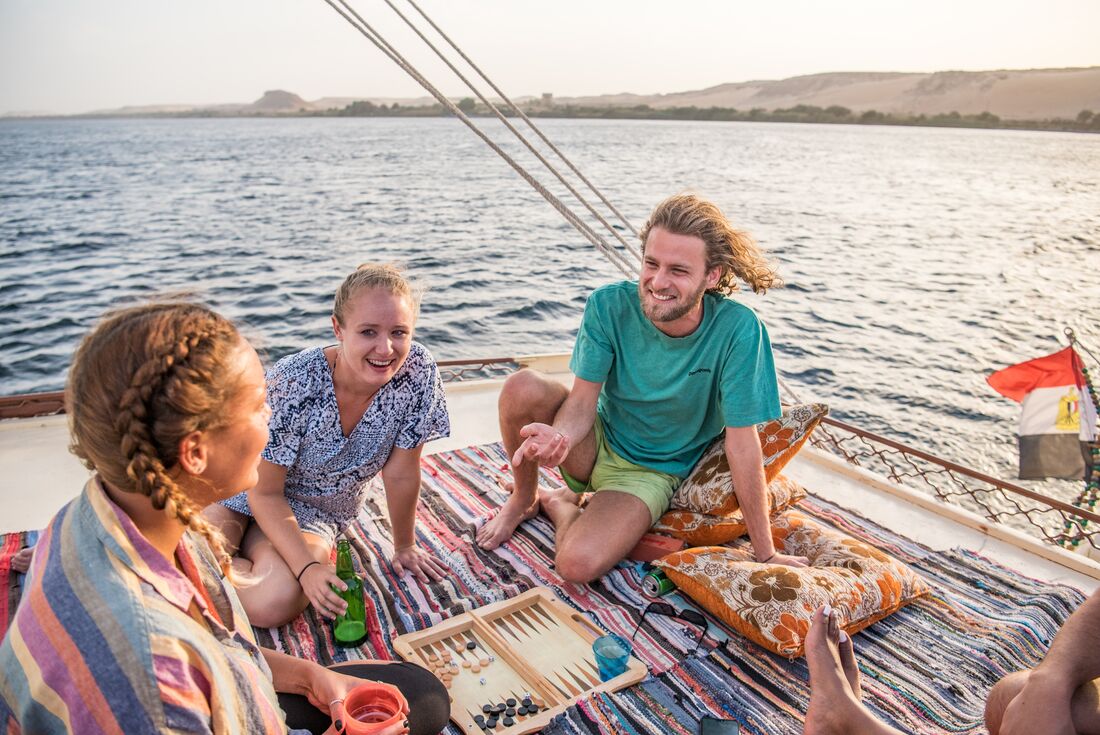 A felucca sailing excursion is one the best ways to experience the relaxed lifestyle of the Nubian and Egyptian culture – part of this immersive experience is sharing a sleeping space with your fellow travellers. You’ll be on a massive mattress like a happy can of sardines. Blankets are provided, but we recommend travelling with a sleep sheet. There is a toilet on board and mosquito net coverage, though it never hurts to have insect repellent on hand.