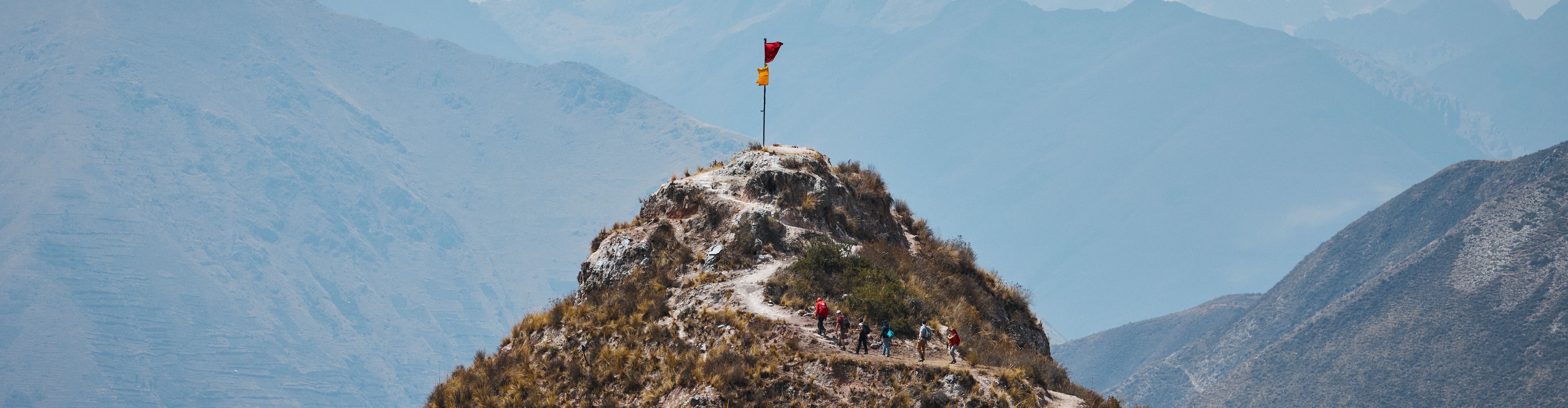 Two Intrepid trekking guides standing on a scenic ridge on the Inca Trail