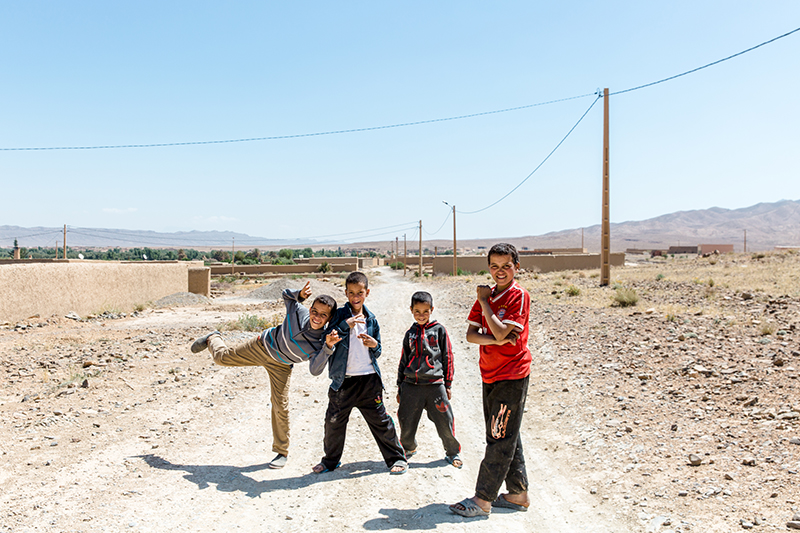 Our first glimpse of the desert was in Midelt. A town placed strategically between the Sahara Desert and the Atlas Mountains. After days of being in Morocco’s imperial cities, it feels wonderful to escape the bustling medinas and enter a world filled with Kasbah’s, olive groves and clear skies. We take an afternoon walk through a local village filled with shy children and their Berber families. The old Kasbah, a grand yet worn down sandcastle sits at one end of the village. It lies empty now, instead, the families had rebuilt their homes across green fields and a small river. The new village still had the feeling of a Kasbah, sandy in colour and each winding corridor cooling from the midday sun. Children ran through the streets, finding a particular joy in trying on our sunglasses and having their picture taken with them on.